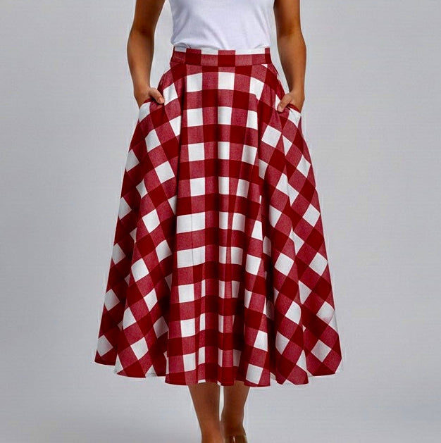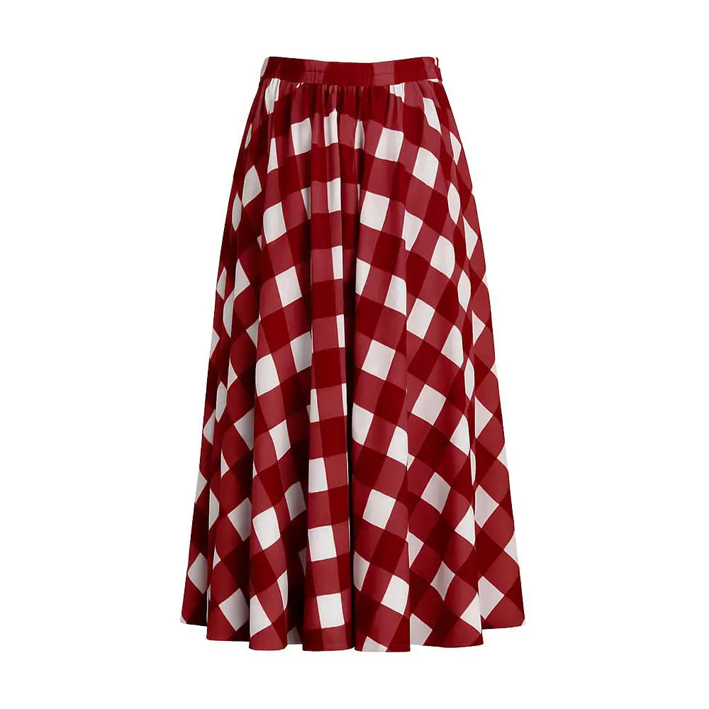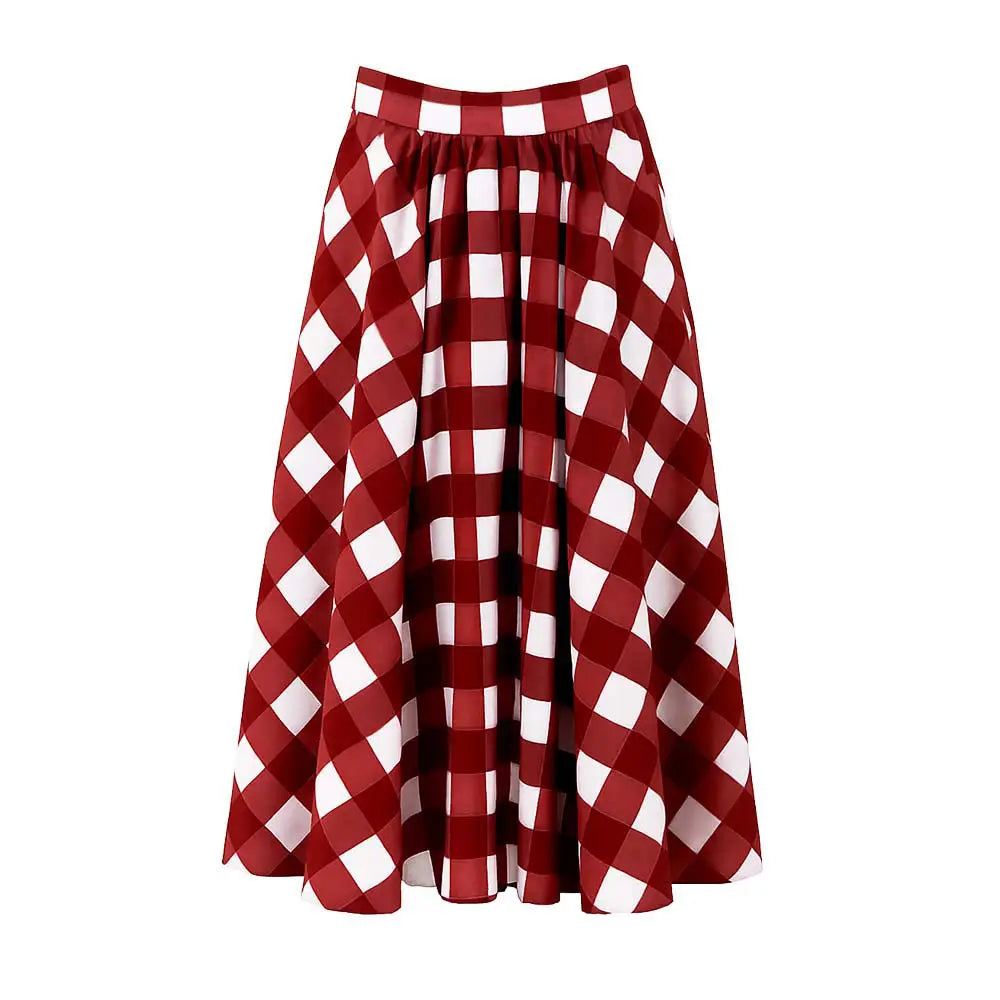 The Elan Skirt carries an easy, joyful lightness — made for movement and spontaneity. Crafted from fine cotton in brick red and white checks, it features a high waist and full, flowing silhouette that’s playful yet poised, classic yet modern.